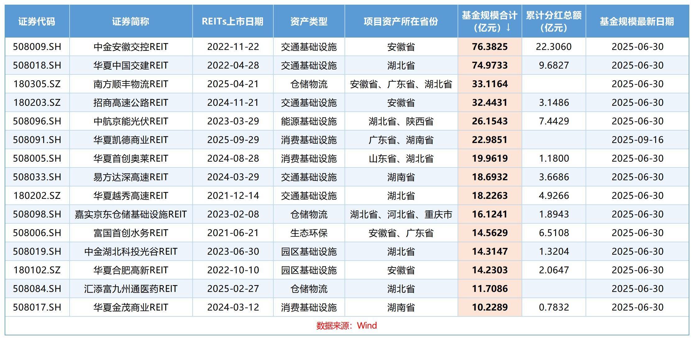 目前,中金安徽交控REIT、华夏中国交建REIT规模较高,均超过70亿元。
