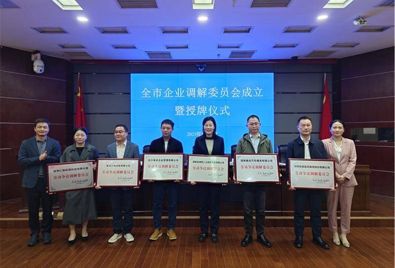 授牌仪式现场。长沙市人社局供图人民网长沙11月7日电 (记者刘宾)昨日,长沙市首批企业调解委员会成立大会暨授牌仪式在市人社局举行。