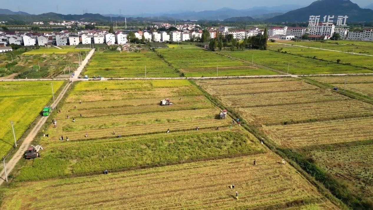 金秋时节,浙江金华武义县迎来水稻丰收,武义县作为浙中粮仓,多台大型收割机穿梭在田间,稻浪随风起伏,空气中弥漫着稻谷的清香,处处洋溢着丰收的喜悦。在龙门双岩农事服务中心,随处可见忙碌的景象,烘干机隆隆作响、全力运转,勾勒出一幅丰收画卷。