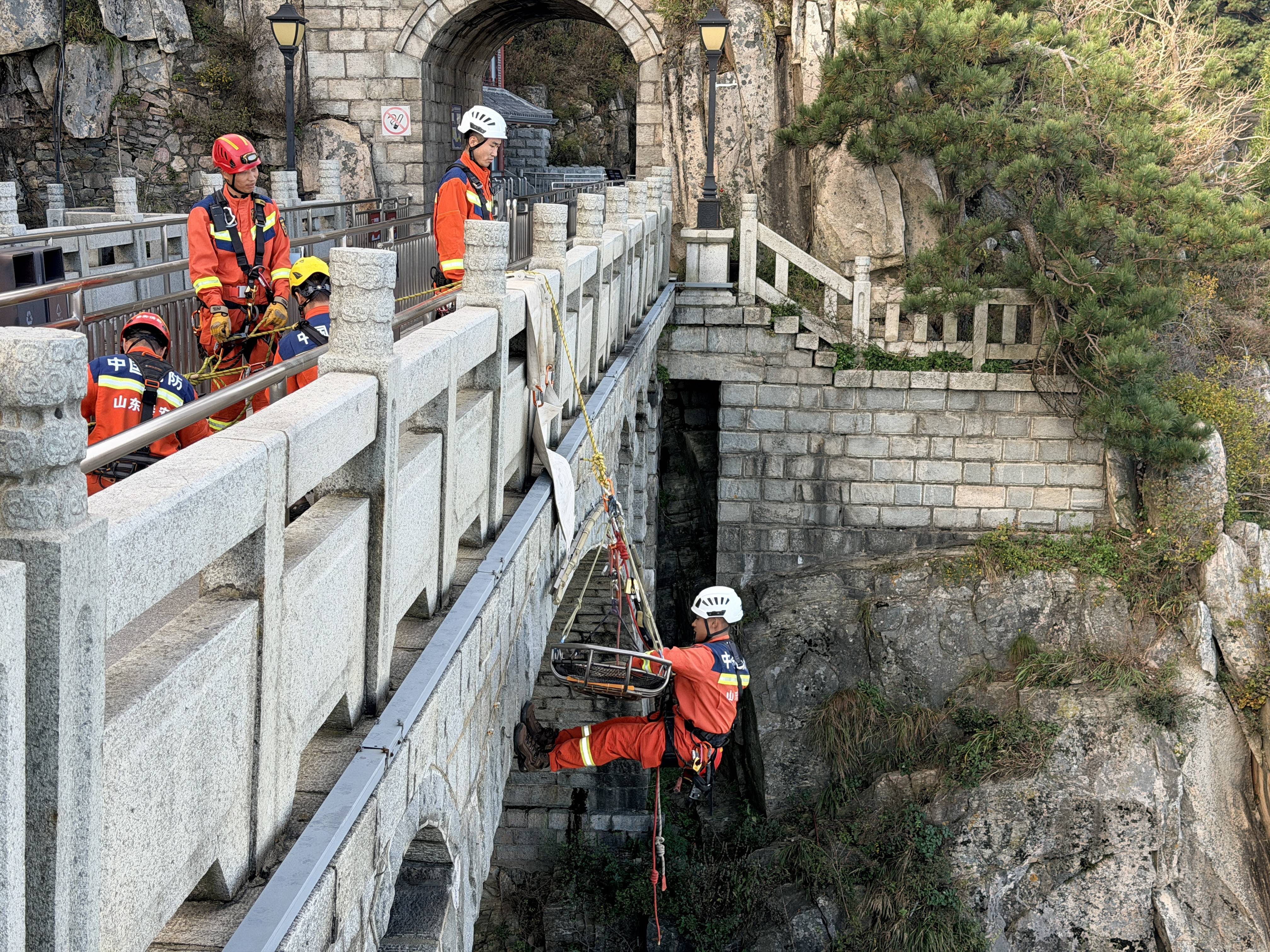 泰山消防救援站的指战员在天桥处开展山岳救助实战演练。新华社记者 张钟仁 摄泰山消防救援站站长程鹏飞说:“如今我们已形成‘岱顶15分钟火灾扑救圈’,确保山顶所有防火单位在15分钟内都能及时得到救援。”在他看来,29年“零火灾”的背后,除了恪尽职守,也离不开与时俱进的战法迭代和因地制宜的装备创新。